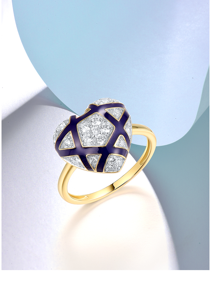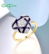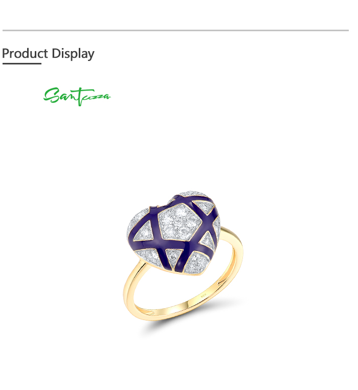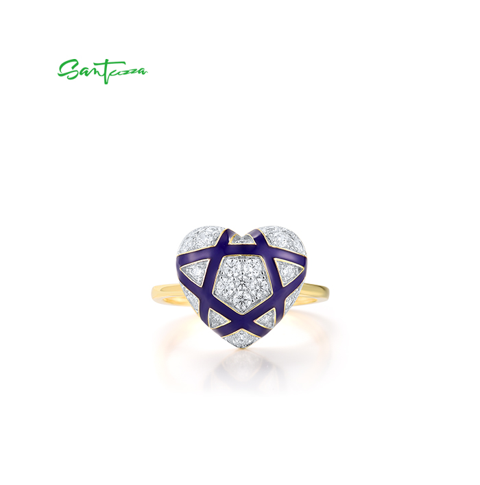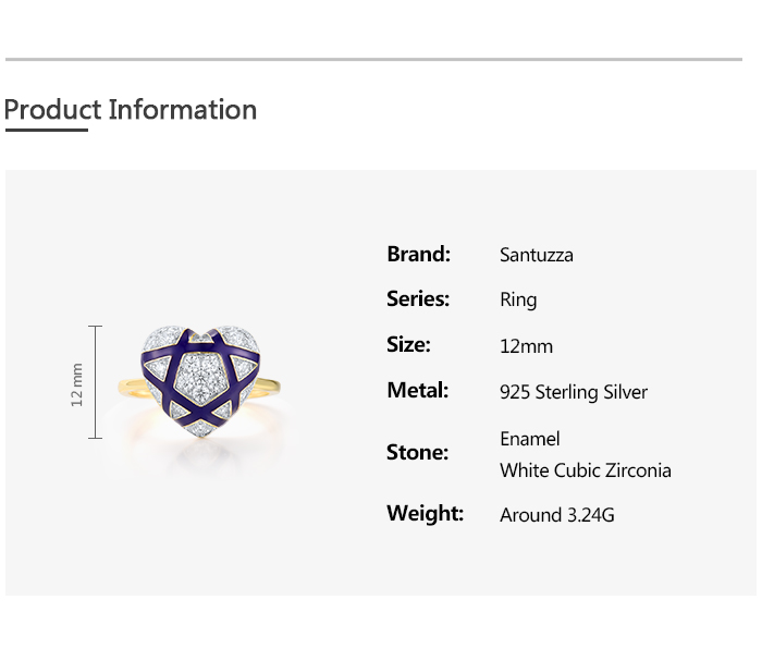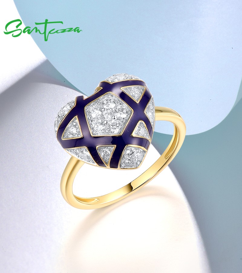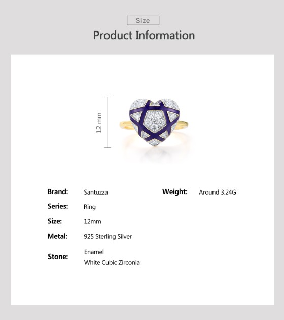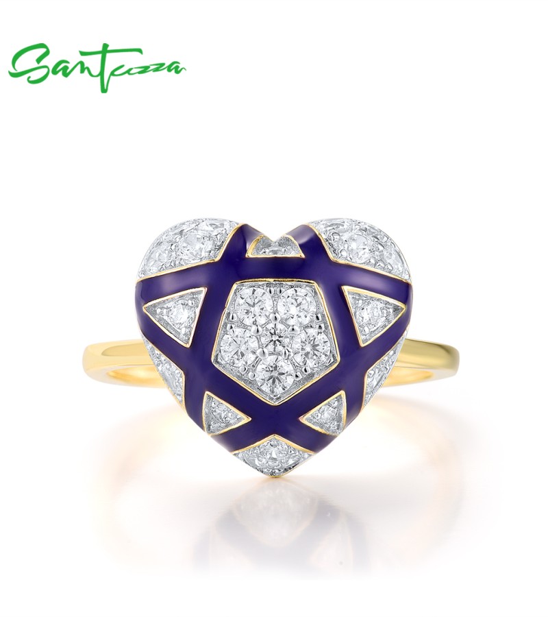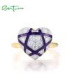 SANTUZZA 925 Sterling Silver Rings White CZ Blue Heart Enamel Jewelry