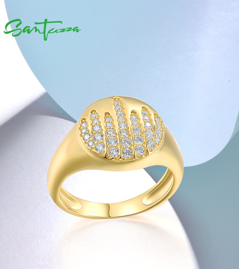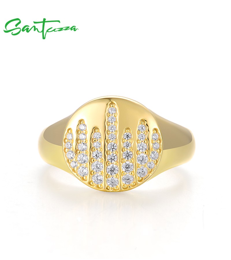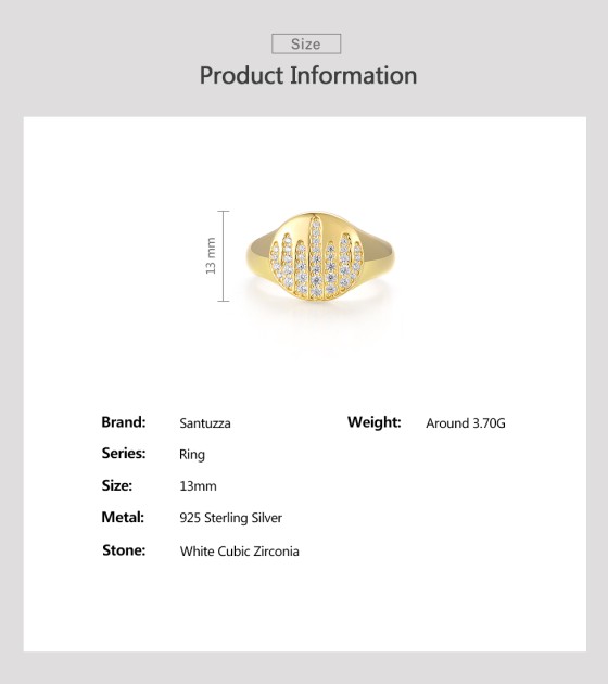 SANTUZZA 925 Sterling Silver Ring White Cubic Zircon Round Jewelry