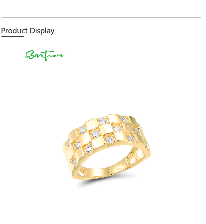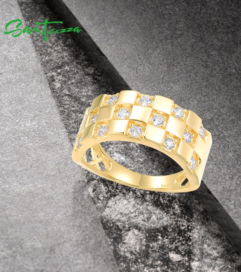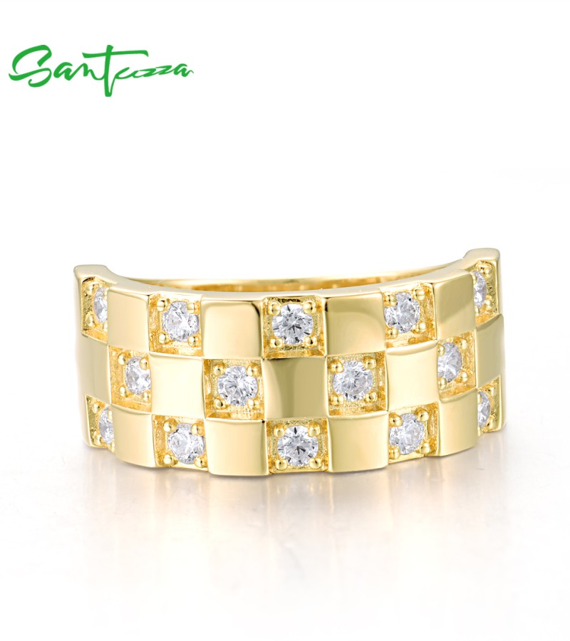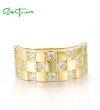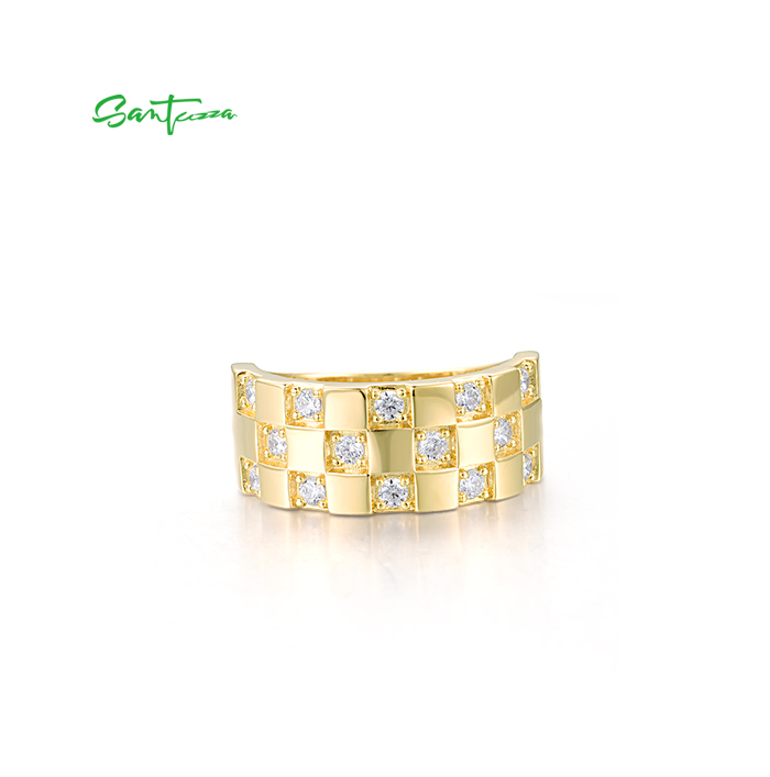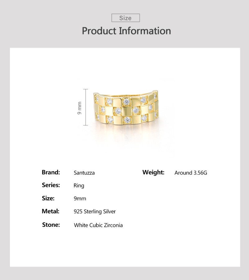 SANTUZZA 925 Sterling Silver Ring White Cubic Zircon Neutral Grid Jewelry