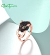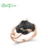 SANTUZZA 925 Sterling Silver Ring Dazzling Black Green Spinel Leopard Panther Animal Jewelry