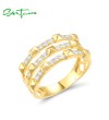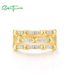 SANTUZZA 925 Sterling Silver Ring White Cubic Zircon Geometric Jewelry