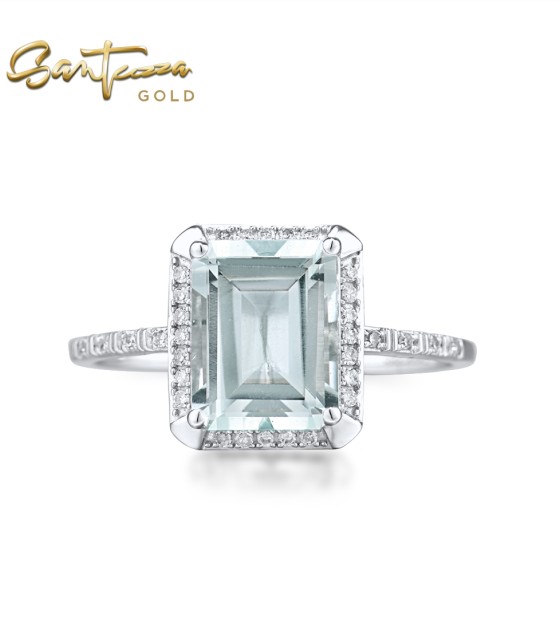 SANTUZZA 14K 585 White Gold Ring Diamond Rectangle Green Amethyst (Prasiolite ) Fine Jewelry - US 6