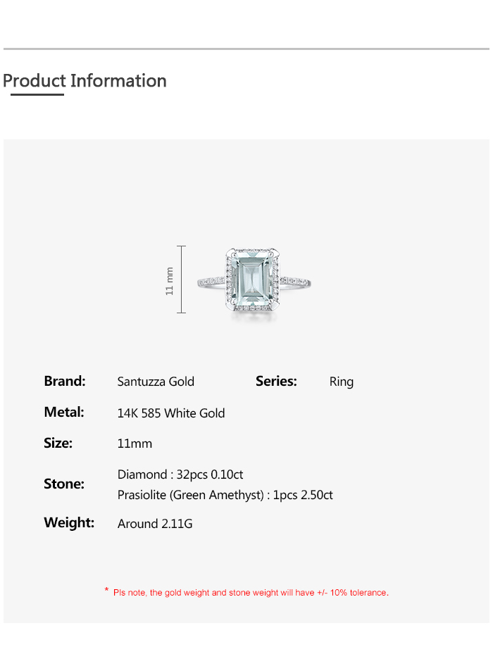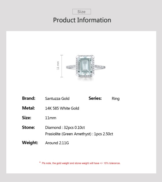 SANTUZZA 14K 585 White Gold Ring Diamond Rectangle Green Amethyst (Prasiolite ) Fine Jewelry - US 8