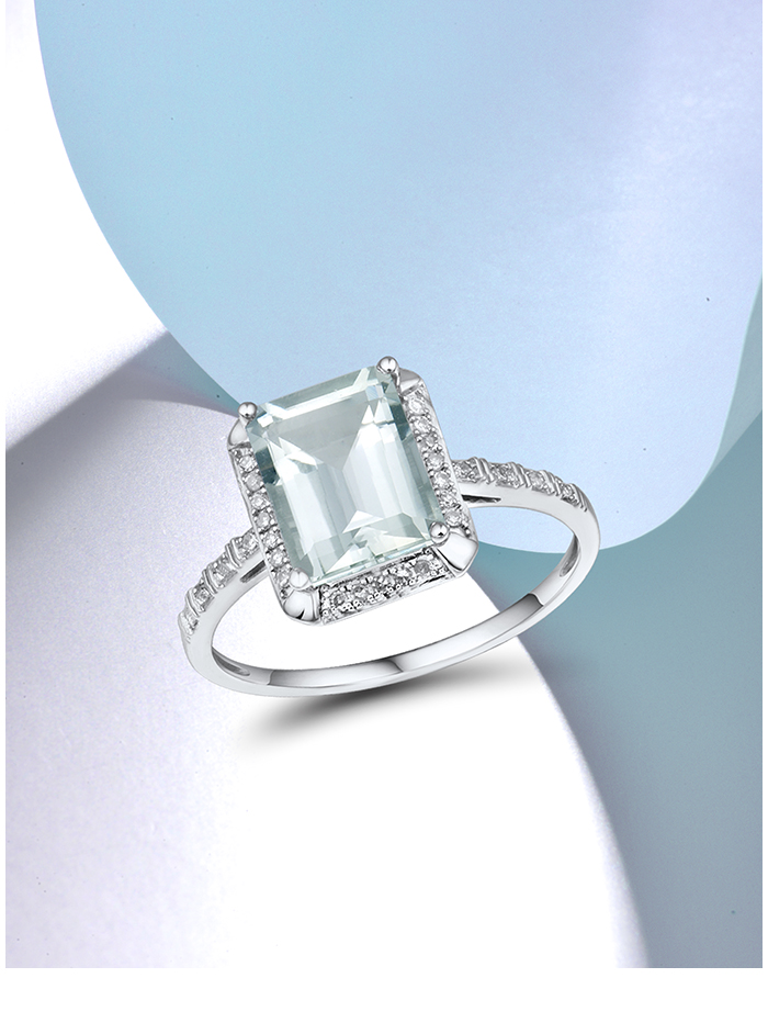 SANTUZZA 14K 585 White Gold Ring Diamond Rectangle Green Amethyst (Prasiolite ) Fine Jewelry - US 7