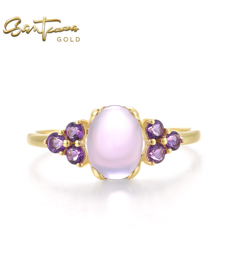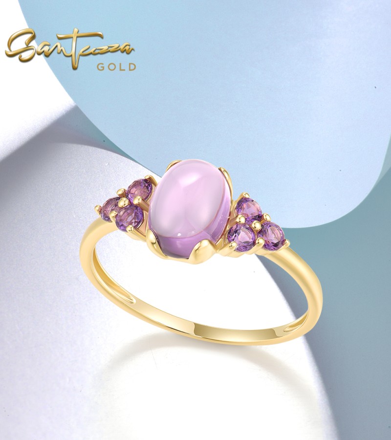 SANTUZZA 14K 585 Yellow Gold Rings Amethyst Fine Jewelry