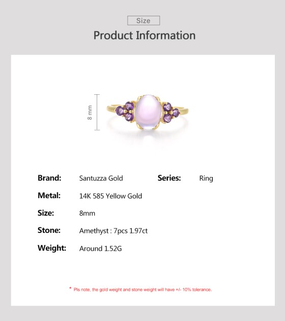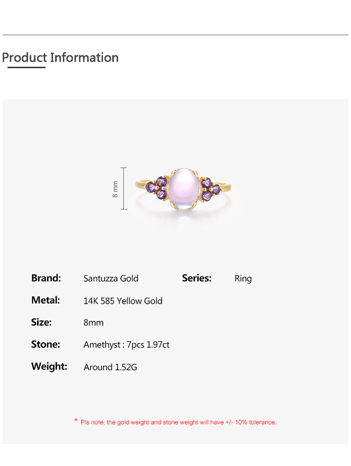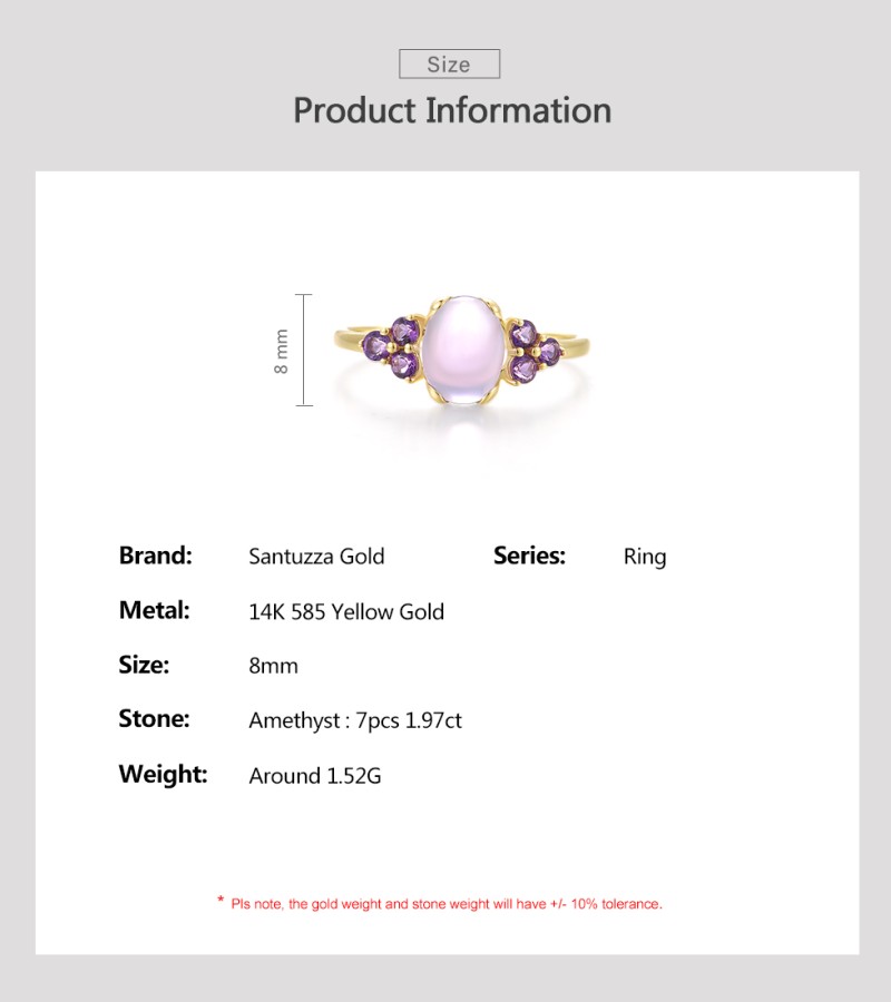 SANTUZZA 14K 585 Yellow Gold Rings Amethyst Fine Jewelry - US 8.5