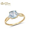 SANTUZZA 14K 585 Yellow Gold Ring Diamond Sky Blue Topaz Fine Jewelry - US 6
