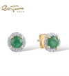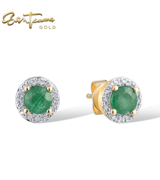 SANTUZZA 14K 585 Yellow/ Rose Gold Earrings Round Emerald/ Blue Sapphire/ Ruby Diamonds Stud Earrings Fine Jewelry - Emerald/Yellow Gold/Screw Lock