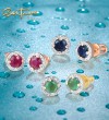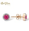 SANTUZZA 14K 585 Yellow/ Rose Gold Earrings Round Emerald/ Blue Sapphire/ Ruby Diamonds Stud Earrings Fine Jewelry