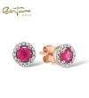 SANTUZZA 14K 585 Yellow/ Rose Gold Earrings Round Emerald/ Blue Sapphire/ Ruby Diamonds Stud Earrings Fine Jewelry - Ruby/Rose Gold/Screw Lock