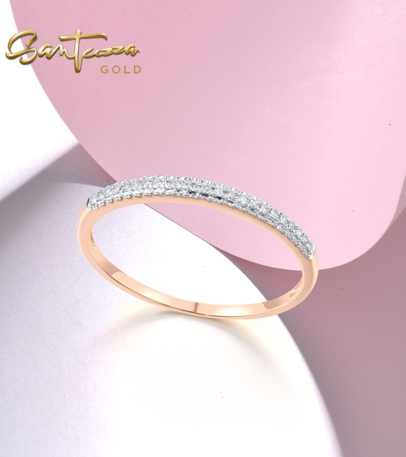 SANTUZZA 14K 585 Rose Gold Ring Sparkling Diamond Fine Jewelry