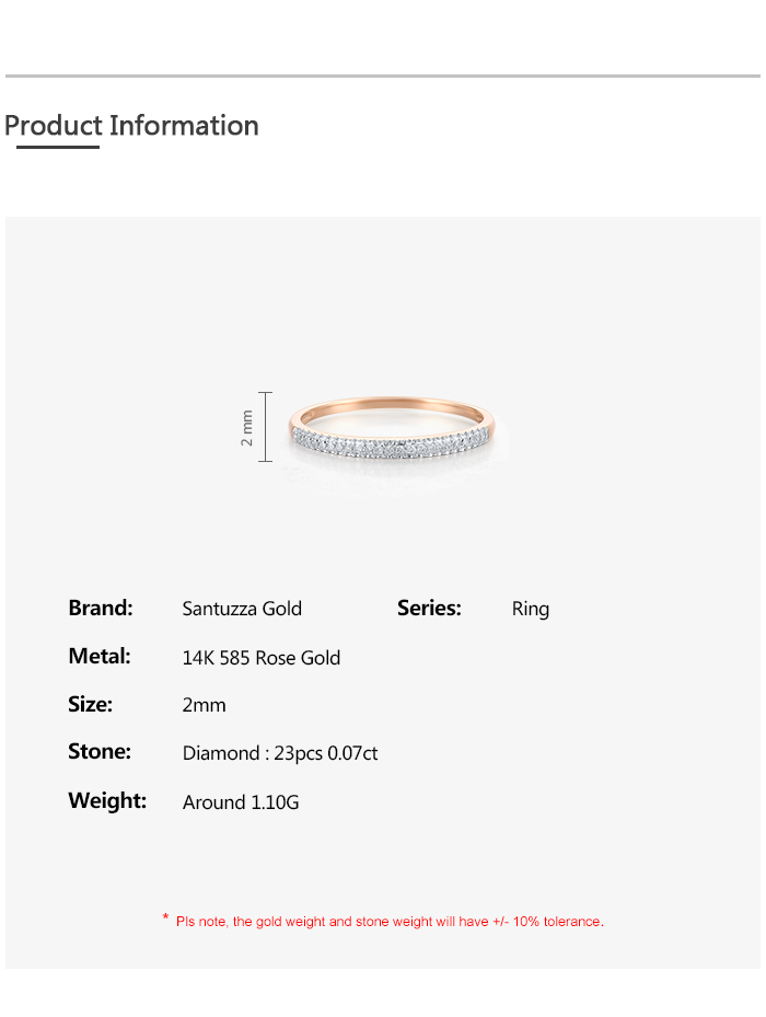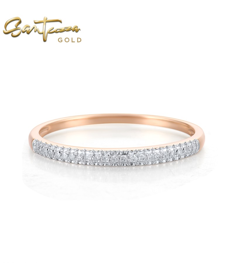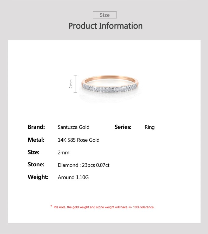 SANTUZZA 14K 585 Rose Gold Ring Sparkling Diamond Fine Jewelry - US 6.5