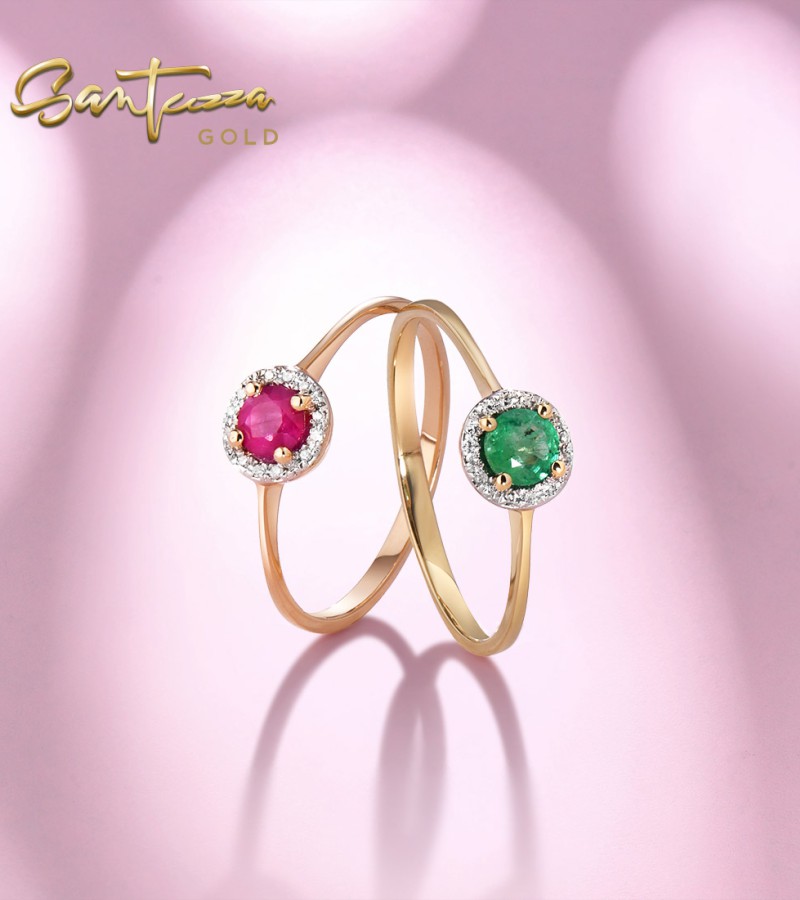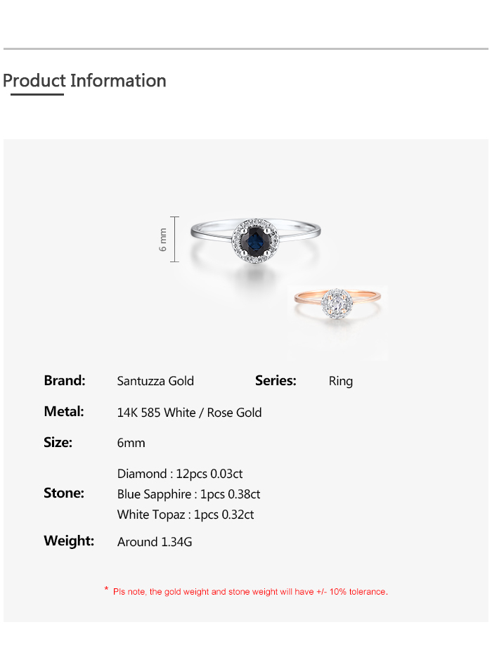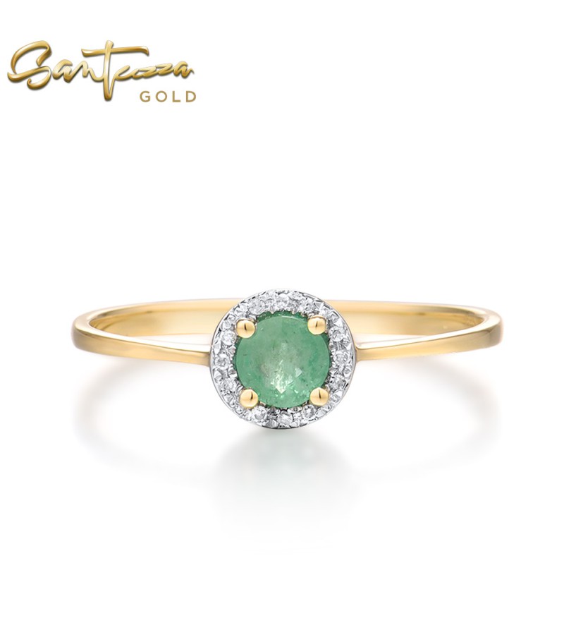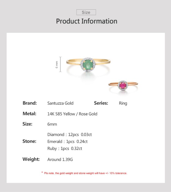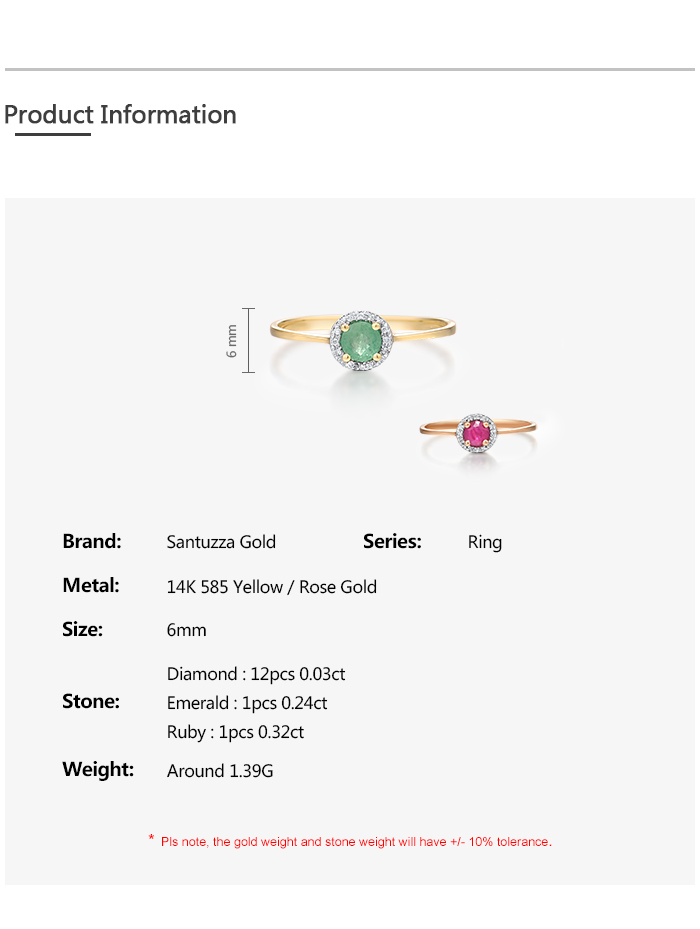 SANTUZZA 14K 585 Yellow/ Rose/ White Gold Ring Round Emerald/ Blue Sapphire/ Ruby/Topaz Diamond Chic Fine Jewelry