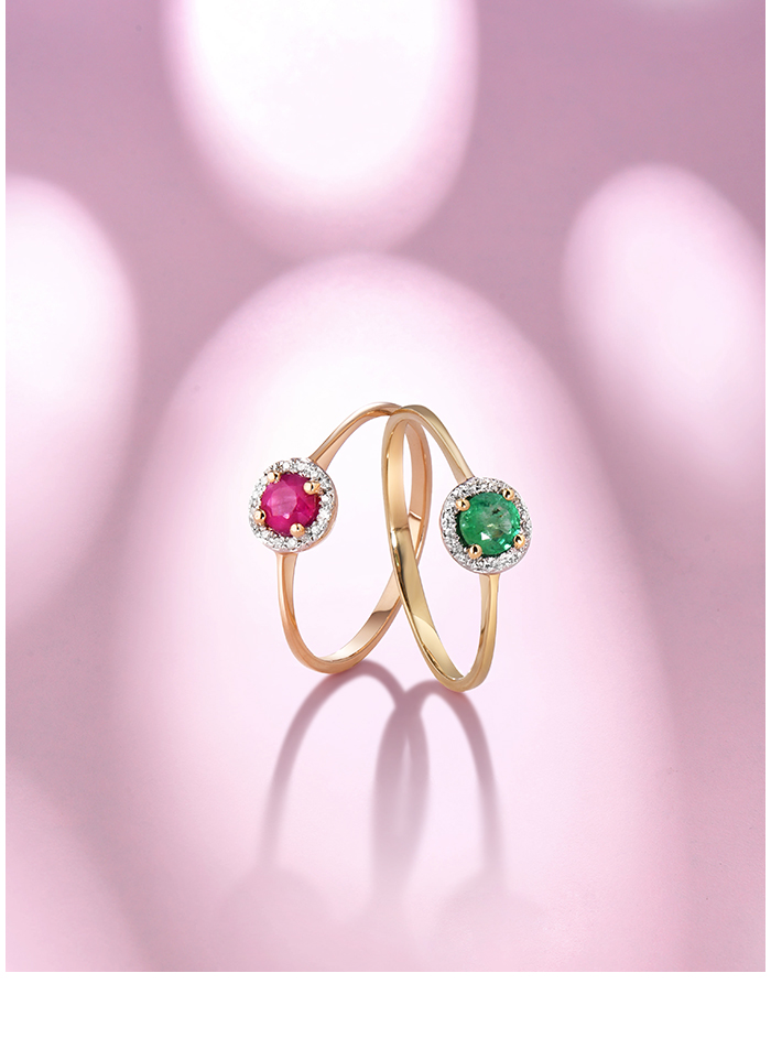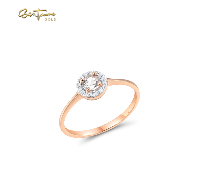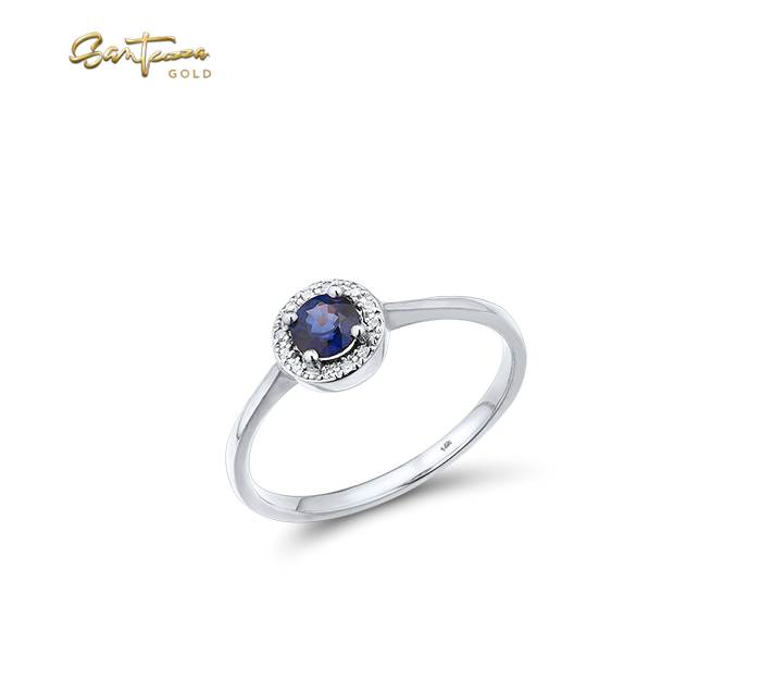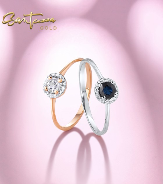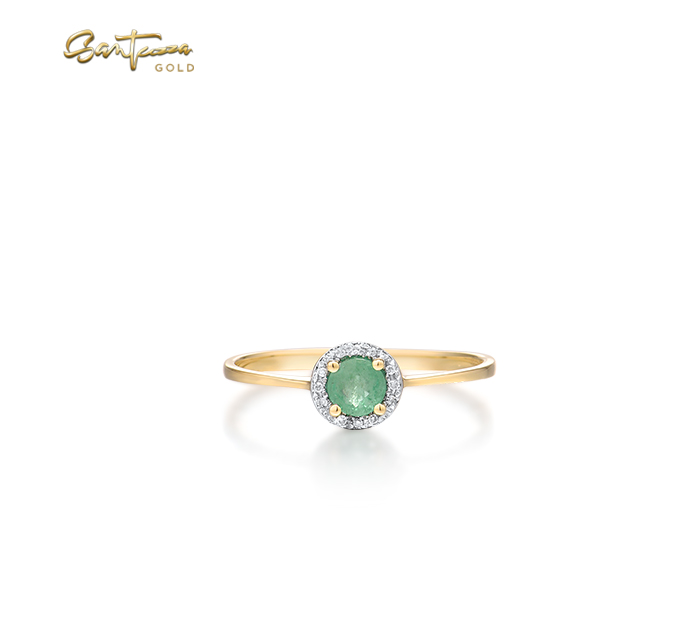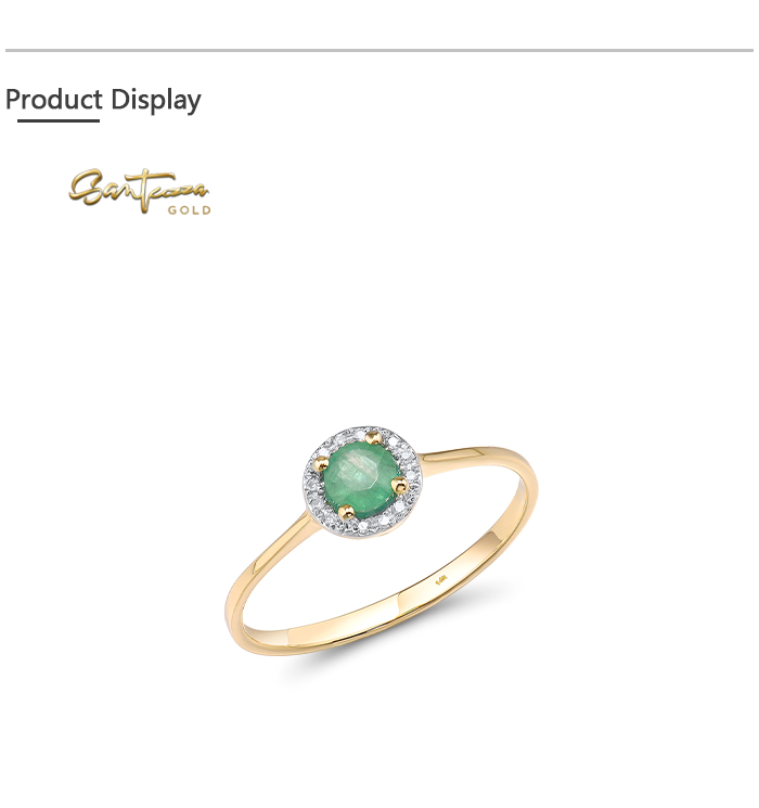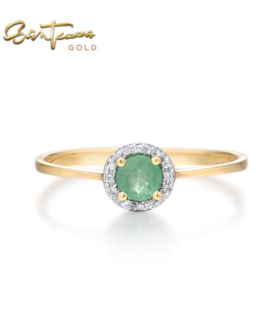 SANTUZZA 14K 585 Yellow/ Rose/ White Gold Ring Round Emerald/ Blue Sapphire/ Ruby/Topaz Diamond Chic Fine Jewelry