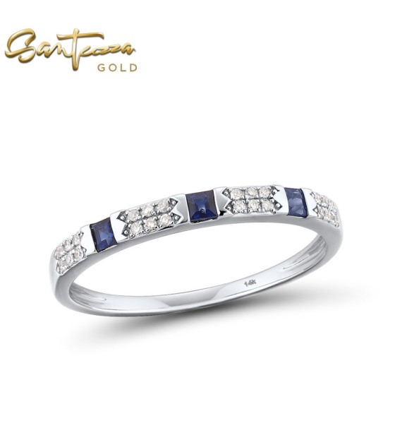 SANTUZZA 14K Yellow/White Gold Rings Diamond Blue Sapphire /Emerald Fine Jewelry - Blue Sapphire/White Gold/US 7.5