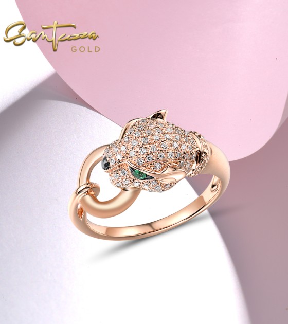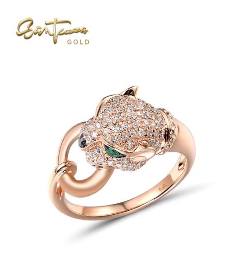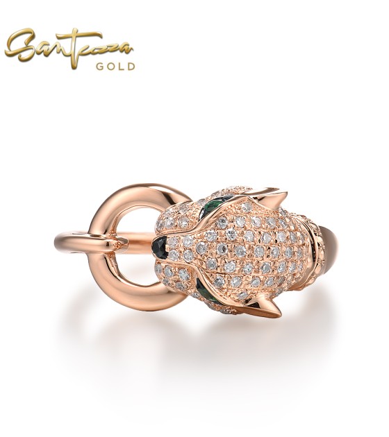 SANTUZZA 14K 585 Rose Gold Ring Leopard Ring Diamond Fine Jewelry