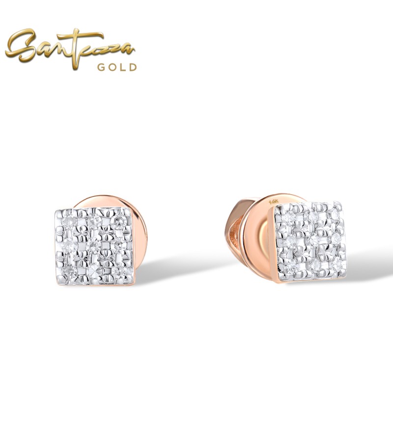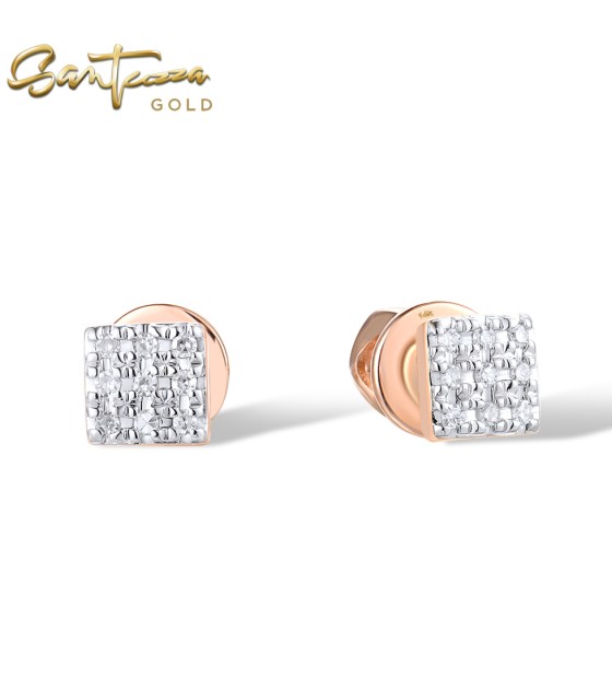 SANTUZZA 14K 585 Rose Yelow Gold Earrings Diamond Dainty Square Stud Fine Jewelry - Rose Gold/Screw Lock