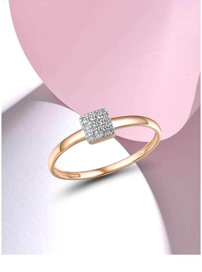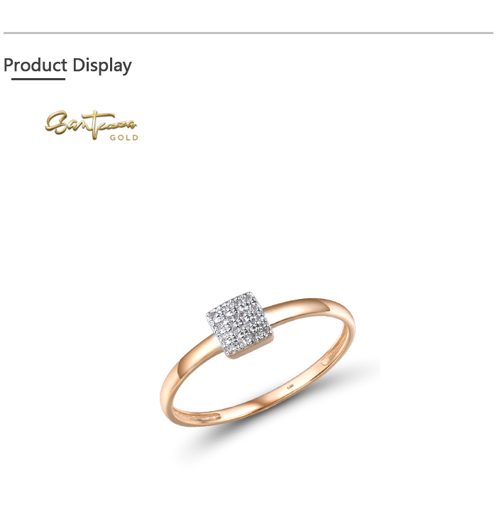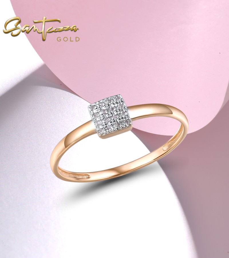 SANTUZZA 14K 585 Rose /White /Yellow Gold Diamond Square Ring Fine Jewelry - Rose Gold/US 6.5