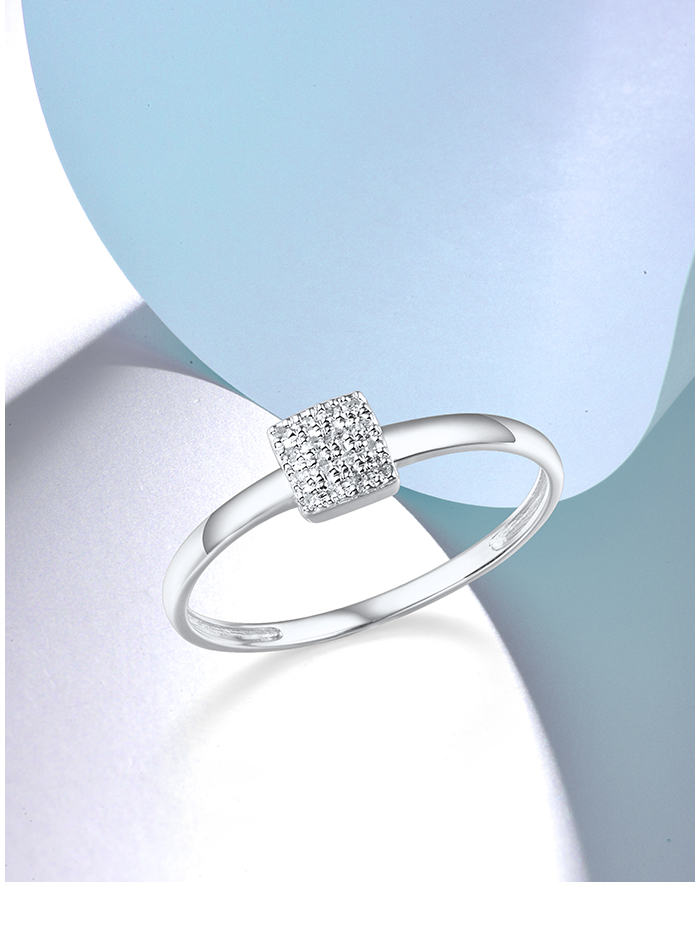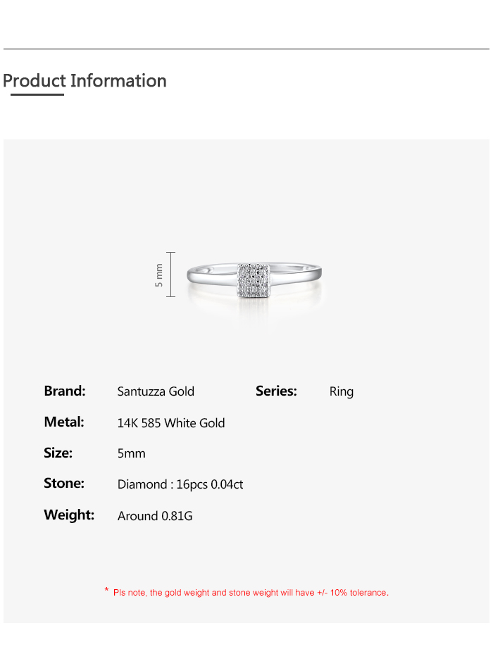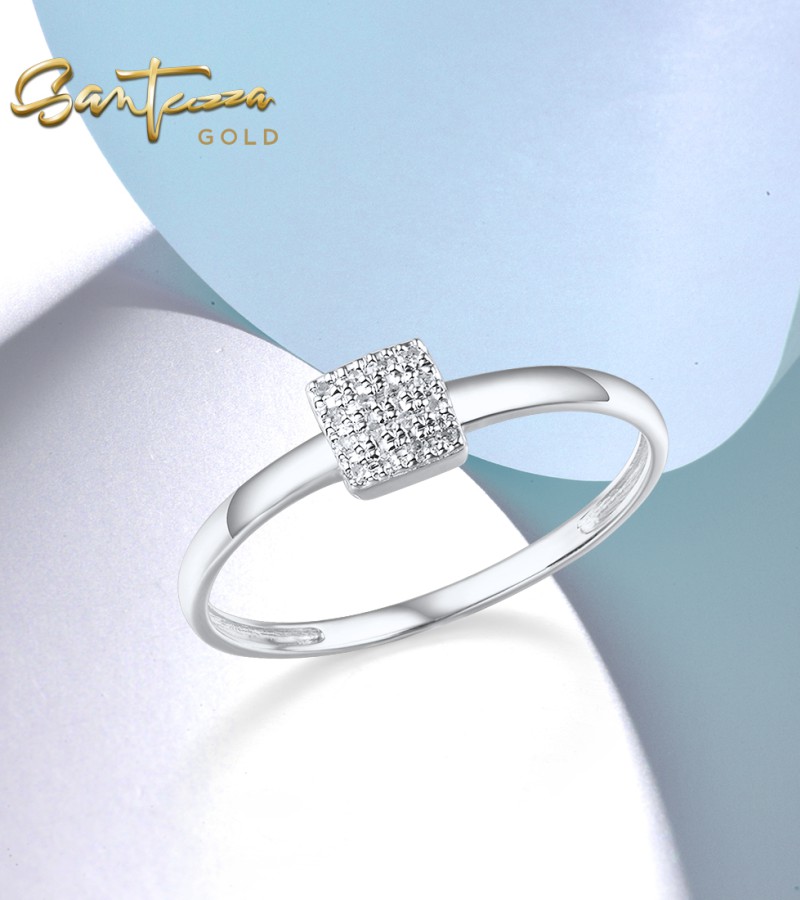 SANTUZZA 14K 585 Rose /White /Yellow Gold Diamond Square Ring Fine Jewelry - White Gold/US 7.5