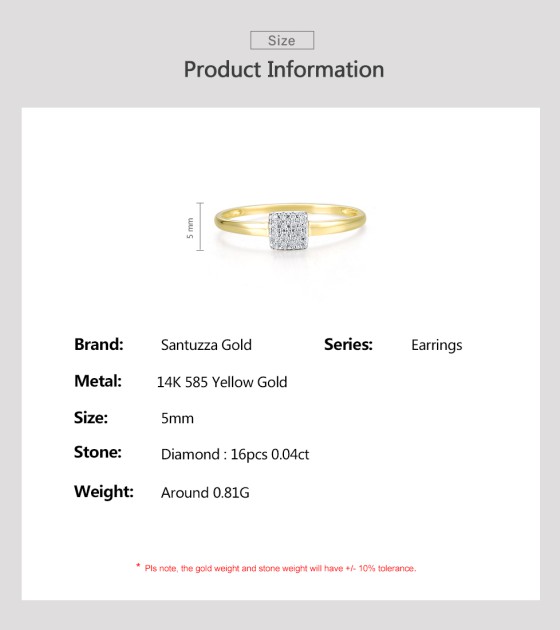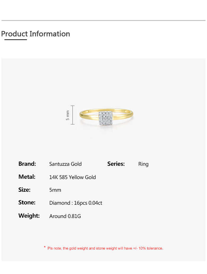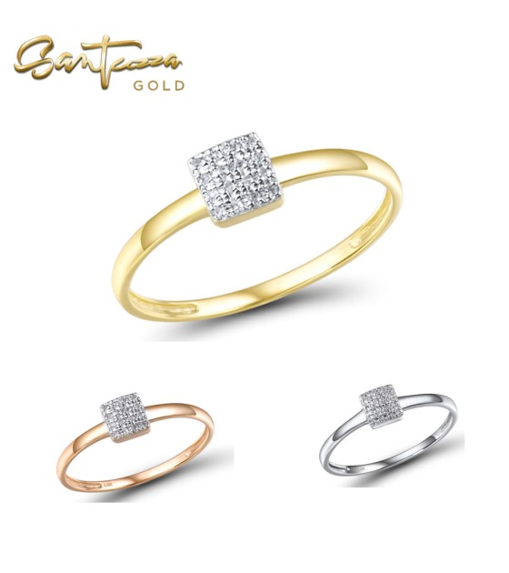 SANTUZZA 14K 585 Rose /White /Yellow Gold Diamond Square Ring Fine Jewelry - Yellow Gold/US 5.5