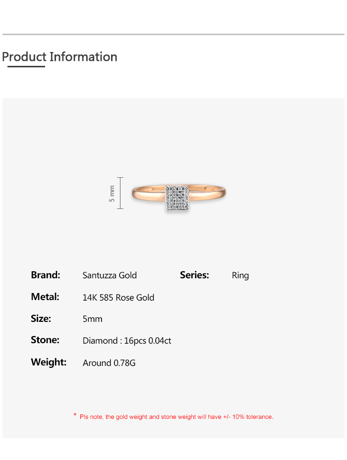 SANTUZZA 14K 585 Rose /White /Yellow Gold Diamond Square Ring Fine Jewelry - Rose Gold/US 5.5