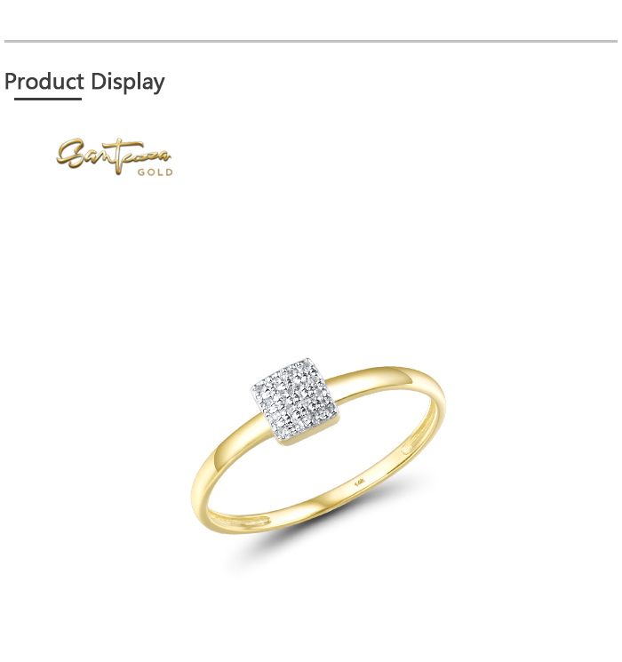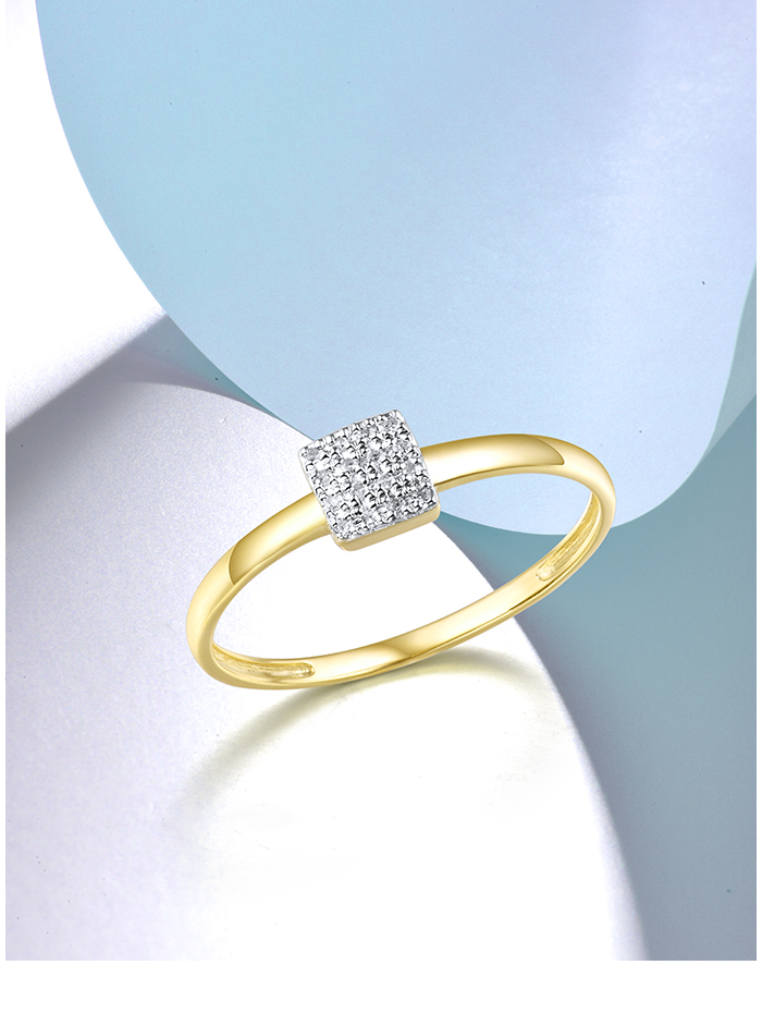 SANTUZZA 14K 585 Rose /White /Yellow Gold Diamond Square Ring Fine Jewelry - Yellow Gold/US 6.5