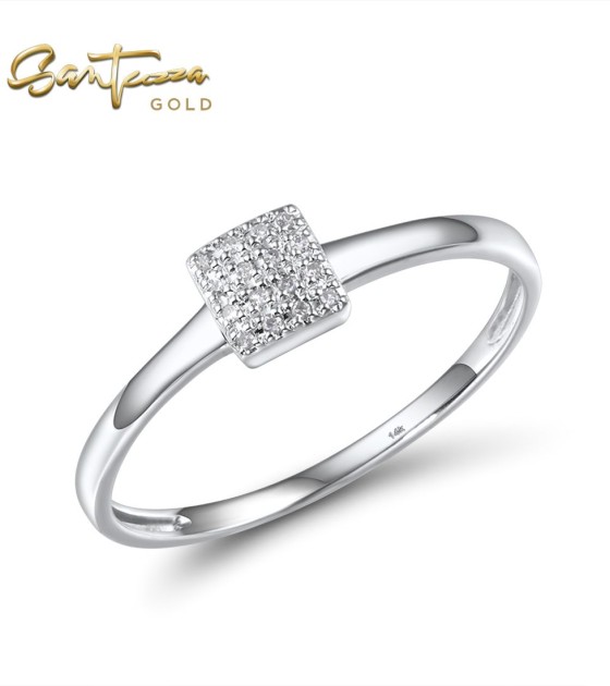 SANTUZZA 14K 585 Rose /White /Yellow Gold Diamond Square Ring Fine Jewelry - White Gold/US 7.5