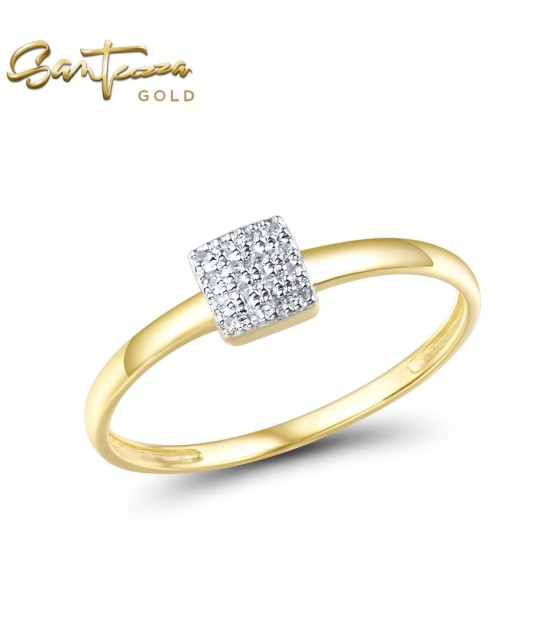 SANTUZZA 14K 585 Rose /White /Yellow Gold Diamond Square Ring Fine Jewelry - Yellow Gold/US 6.5