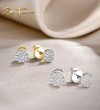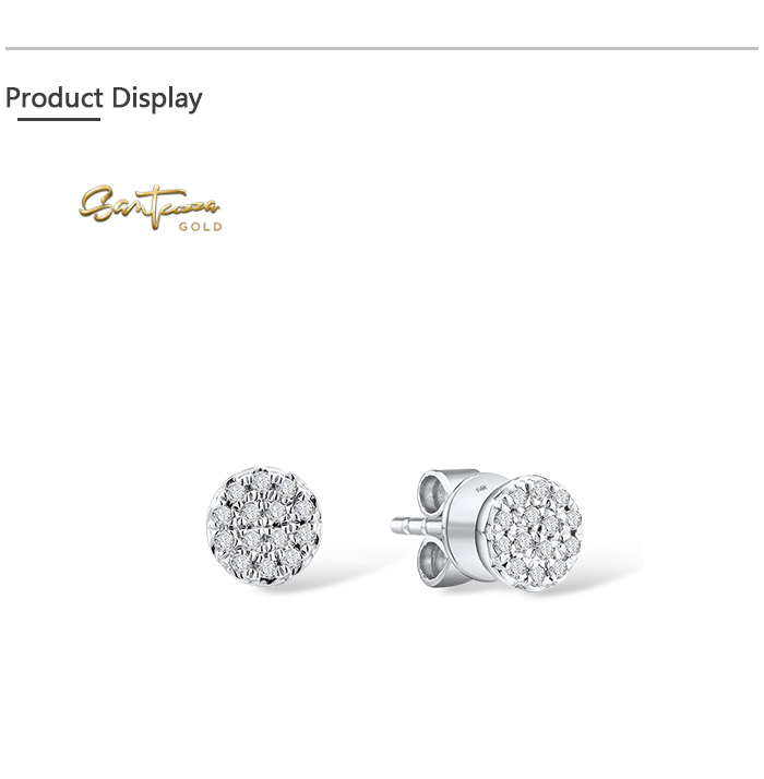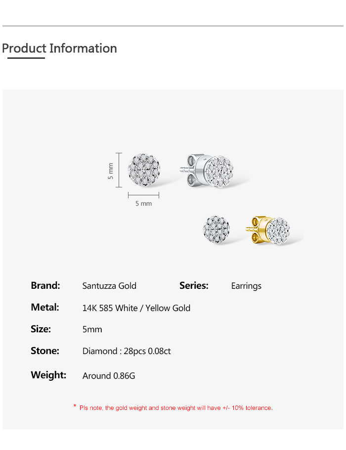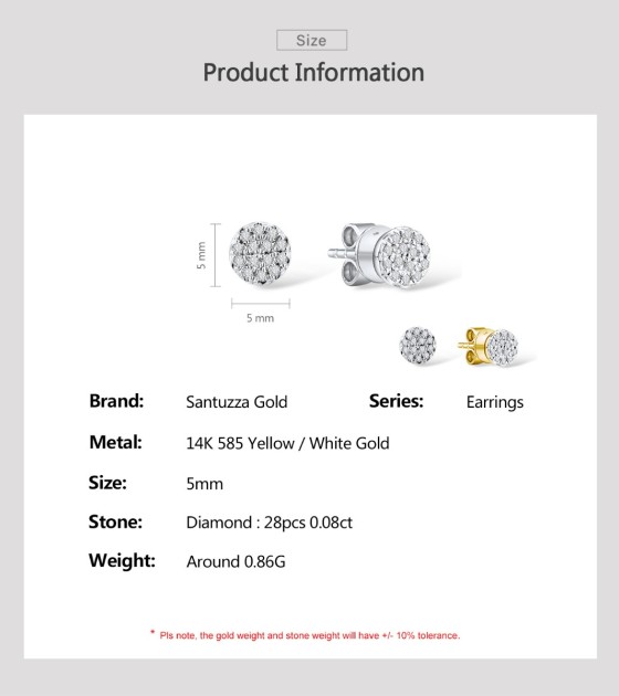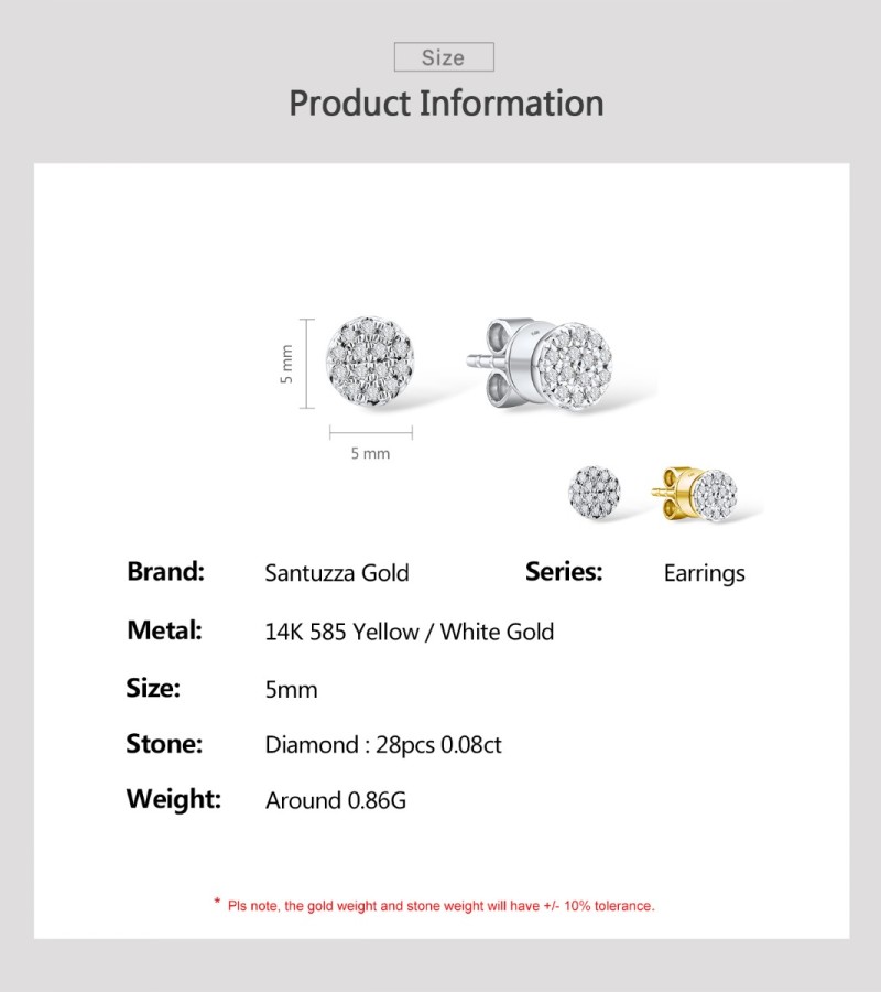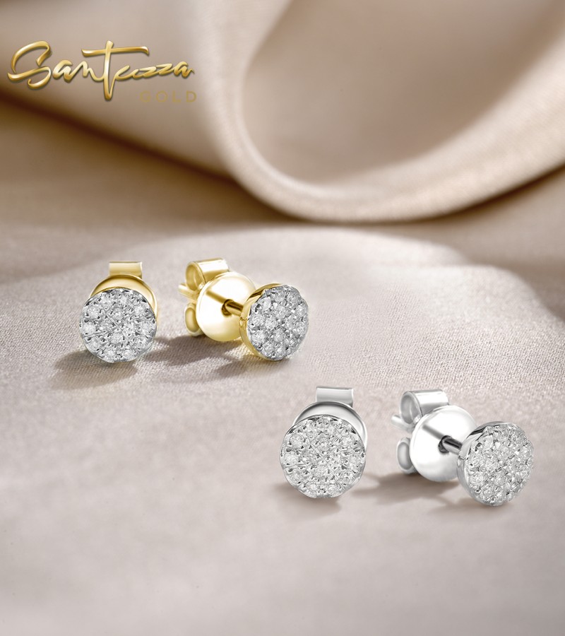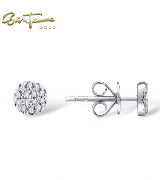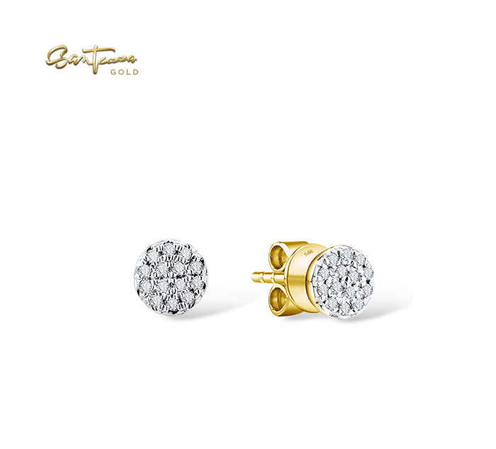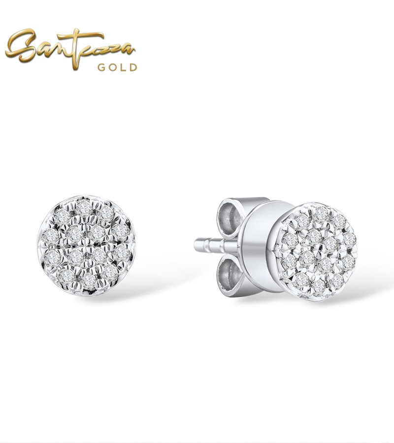 SANTUZZA 14K 585 Yellow/white Gold Stud Earrings Diamond Round Cirle Fine Jewelry