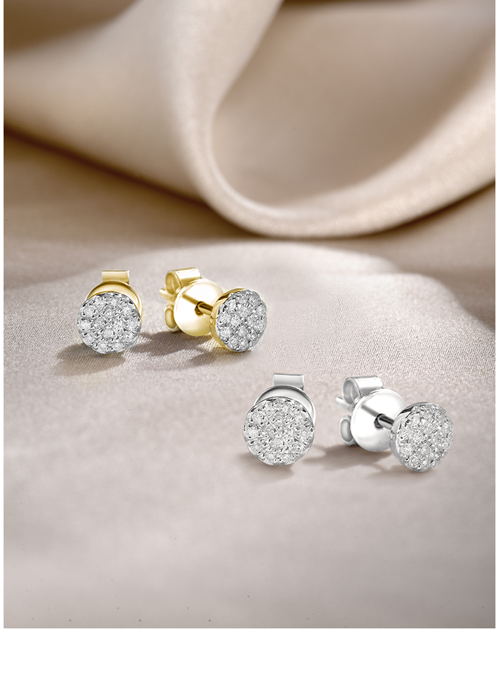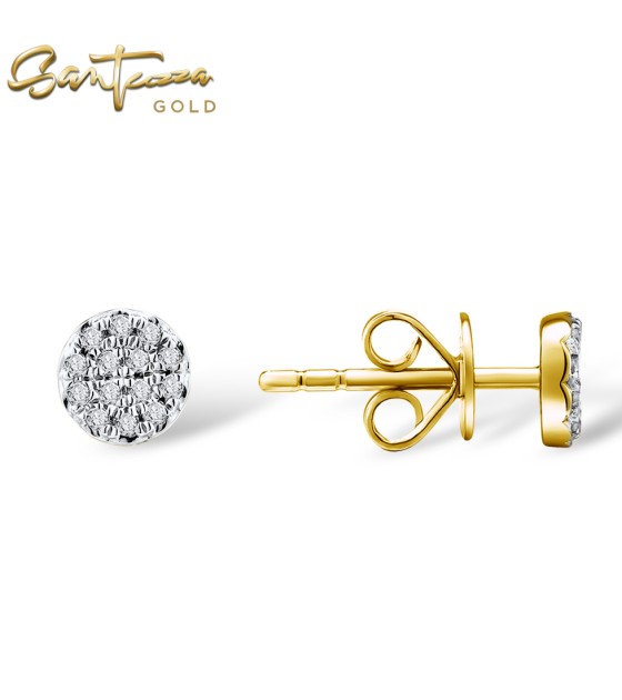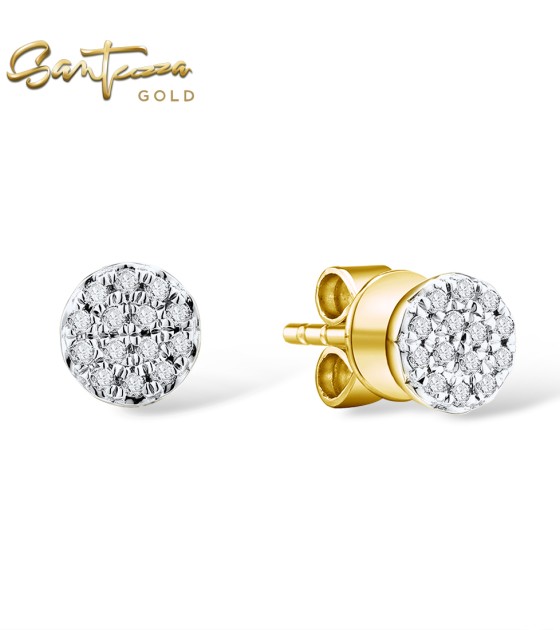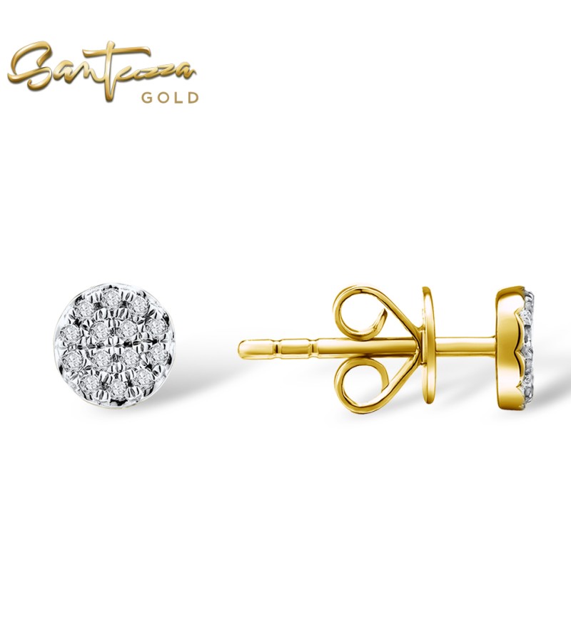 SANTUZZA 14K 585 Yellow/white Gold Stud Earrings Diamond Round Cirle Fine Jewelry - Yellow Gold