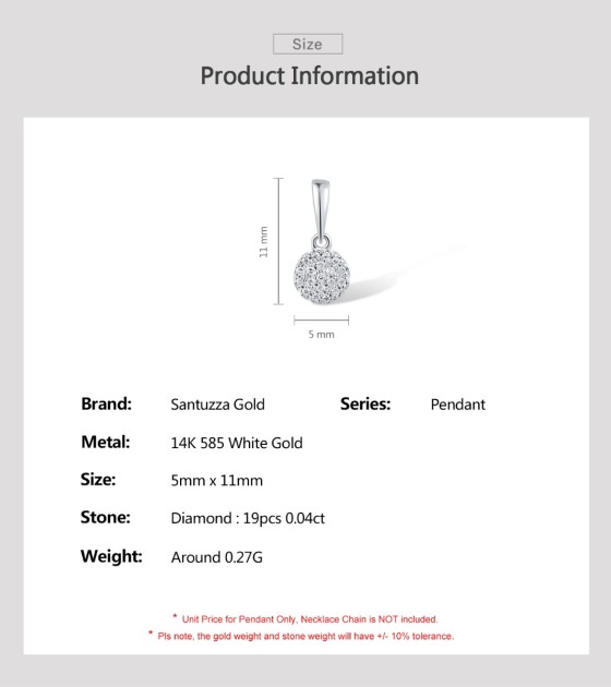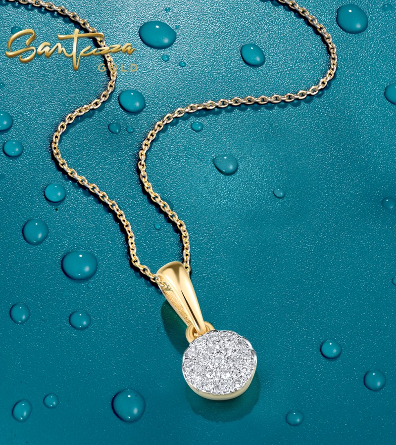 SANTUZZA 14K 585 Yellow / White Gold Pendants Small Round Circle Diamond Fine Jewelry