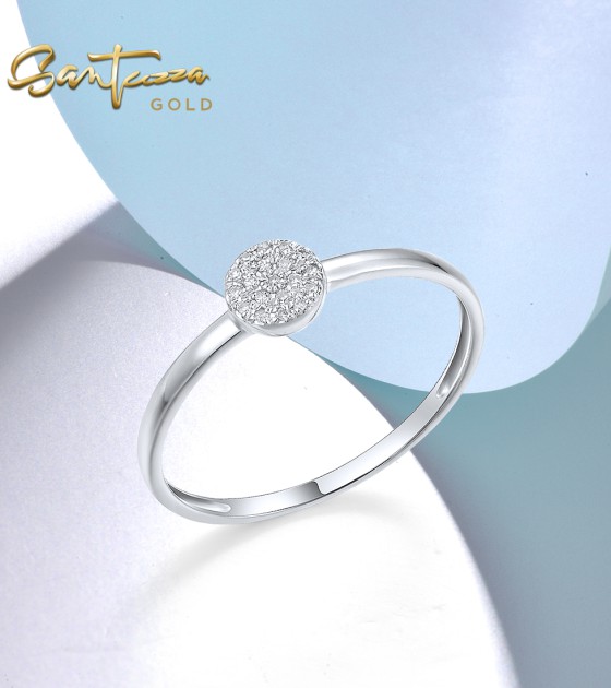 SANTUZZA 14K 585 Yellow / Rose / White Gold Ring Diamond Round Cirle Fine Jewelry - White Gold/US 7.5