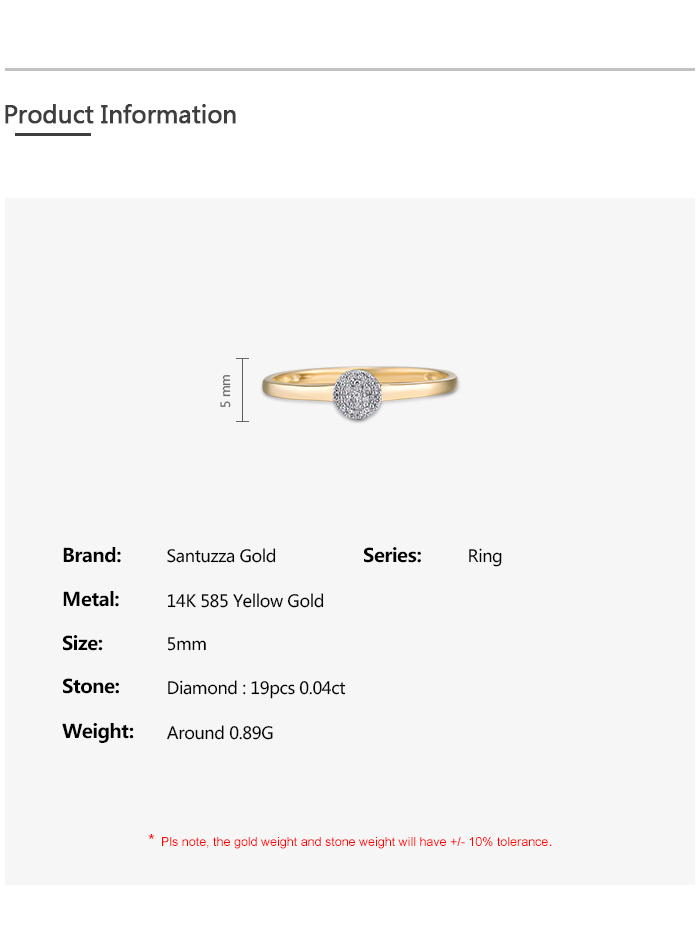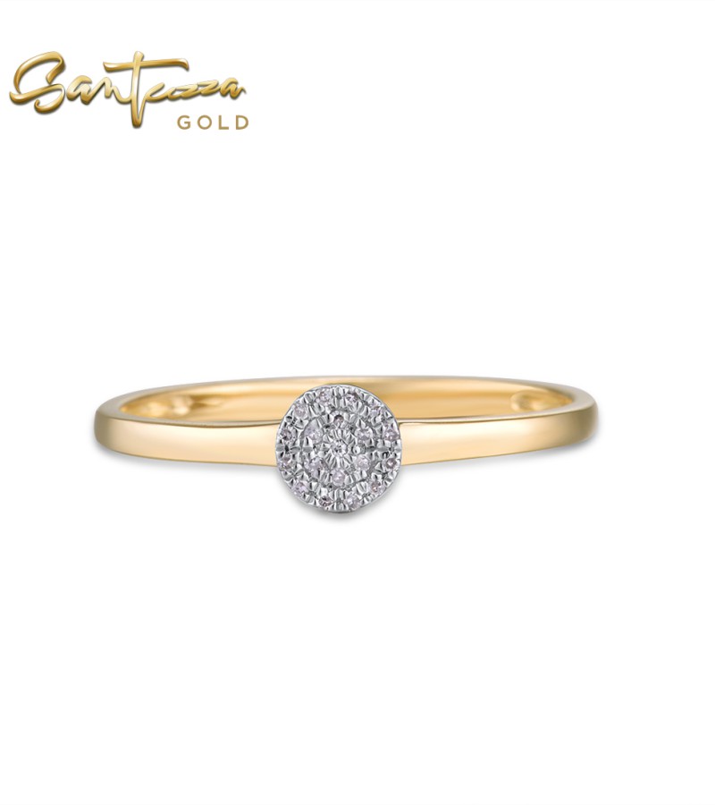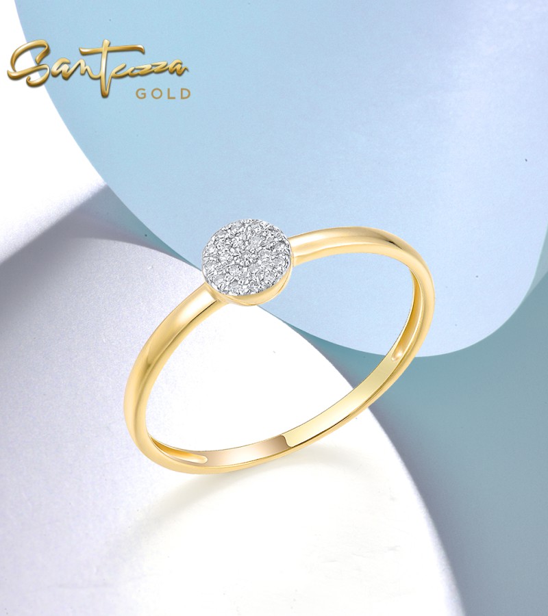SANTUZZA 14K 585 Yellow / Rose / White Gold Ring Diamond Round Cirle Fine Jewelry - Yellow Gold/US 7.5