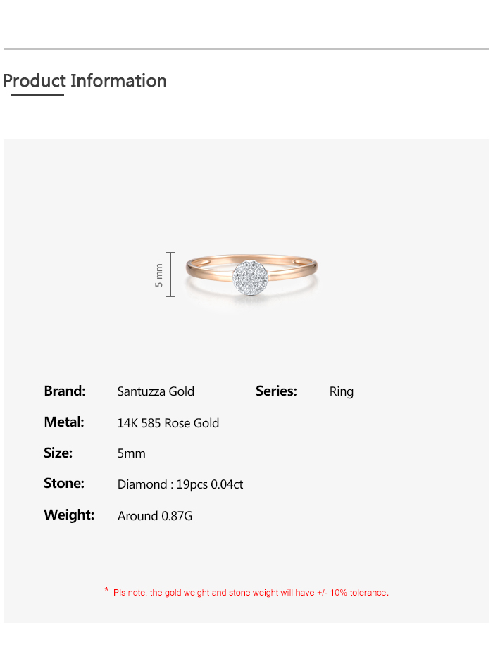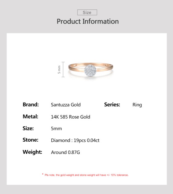 SANTUZZA 14K 585 Yellow / Rose / White Gold Ring Diamond Round Cirle Fine Jewelry - Rose Gold/US 5.5