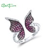 SANTUZZA 925 Sterling Silver Ring Created Pink Sapphire Ruby Opened Butterfly Jewelry