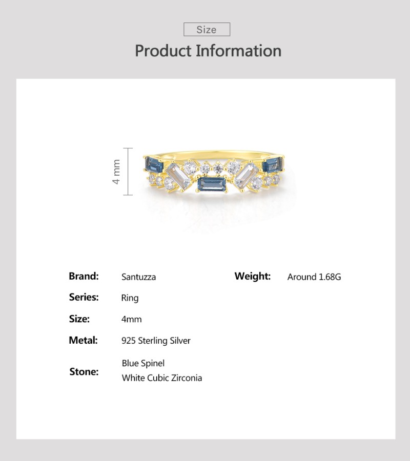 SANTUZZA 925 Sterling Silver Rings Blue Spinel White CZ Glowing Jewelry - US 8