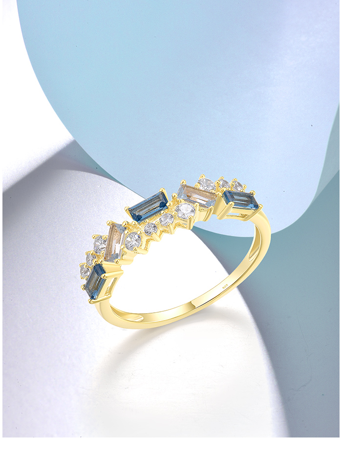 SANTUZZA 925 Sterling Silver Rings Blue Spinel White CZ Glowing Jewelry - US 7