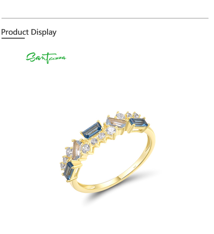 SANTUZZA 925 Sterling Silver Rings Blue Spinel White CZ Glowing Jewelry