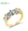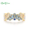 SANTUZZA 925 Sterling Silver Rings Blue Spinel White CZ Elegant Tapper Jewelry