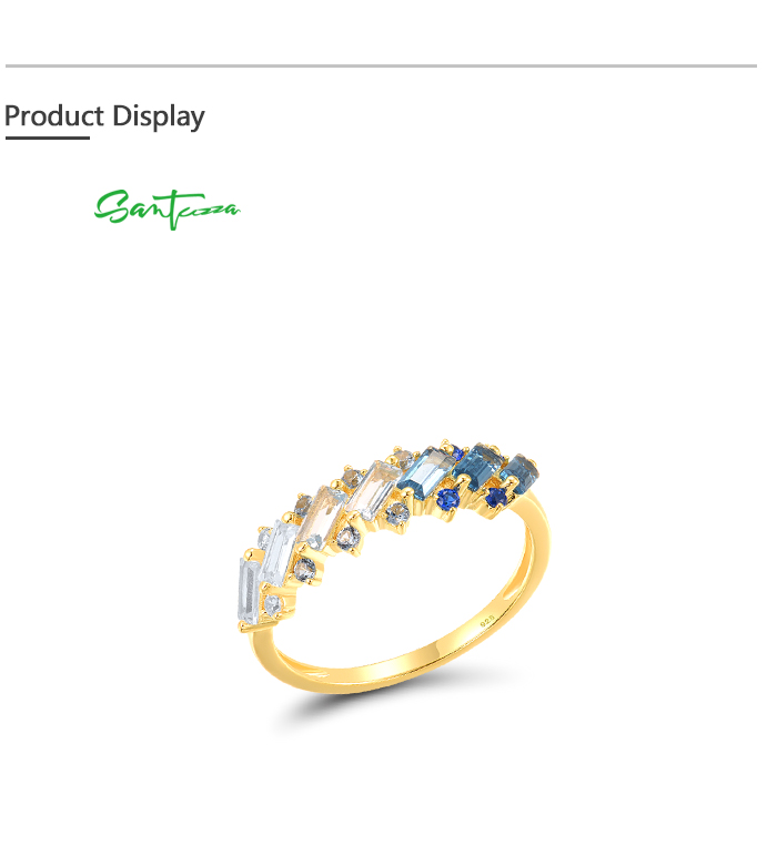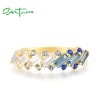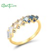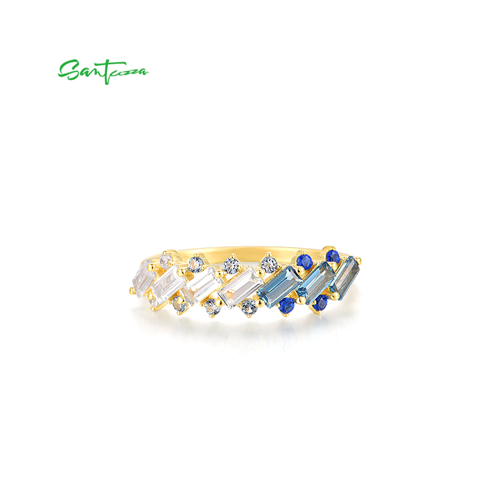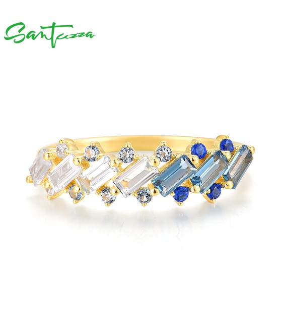 SANTUZZA 925 Sterling Silver Rings Blue Spinel White CZ Tapper Jewelry