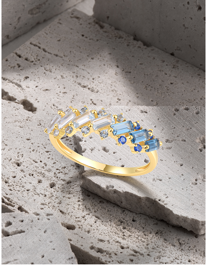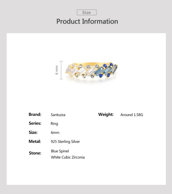SANTUZZA 925 Sterling Silver Rings Blue Spinel White CZ Tapper Jewelry - US 7