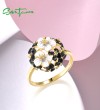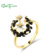 SANTUZZA 925 Sterling Silver Rings Sparkling White&Black Cluster Flower Jewelry