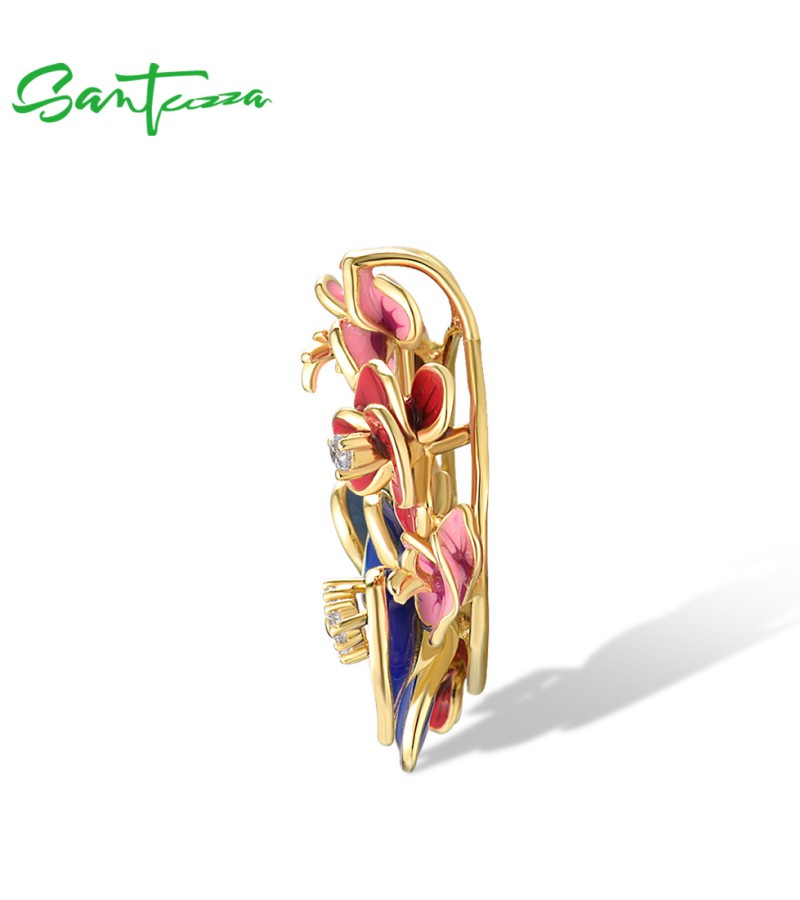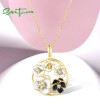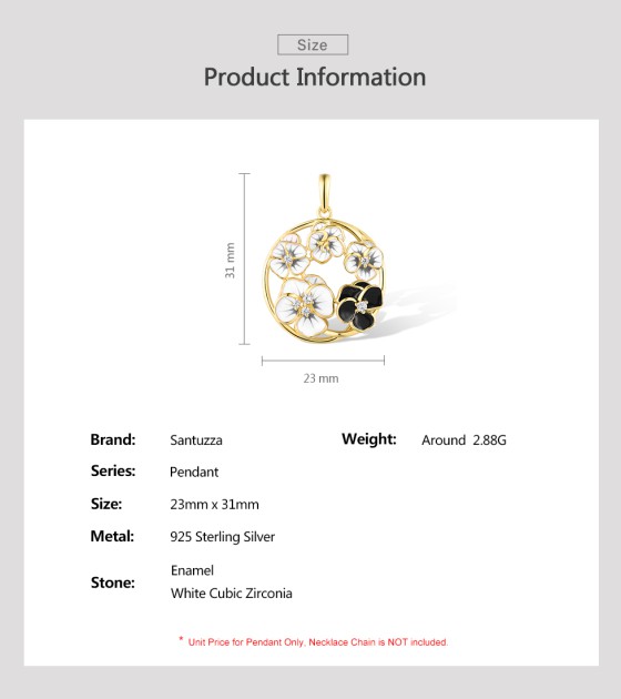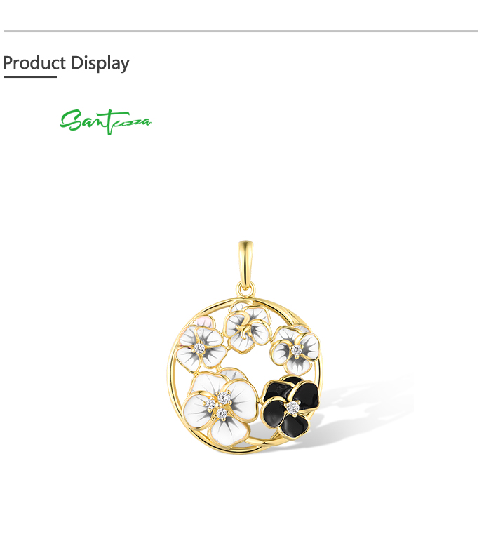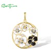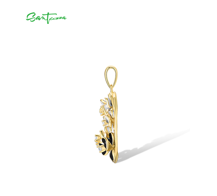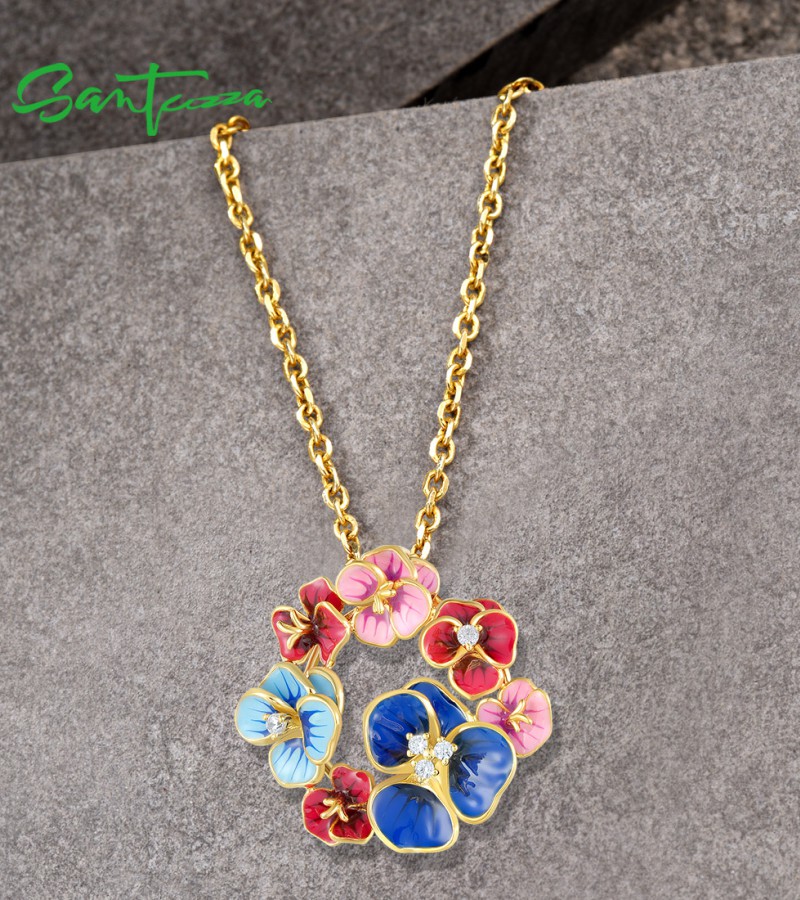 SANTUZZA 925 Silver Sterling Pendant White Cubic Zirconia Fantastic Colorful Flower Jewelry