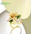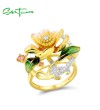 SANTUZZA Silver Rings For Women 925 Sterling Silver Yellow Flower Jewelry Enamel