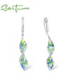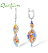 SANTUZZA Silver Earrings 925 Sterling Silver Long Colorful Flower Drop Earrings Jewelry Enamel