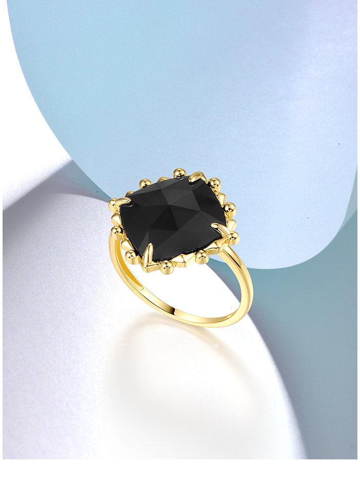 SANTUZZA 925 Sterling Silver Rings For Women Sparkling Black Agate Grand Square Jewelry - US 7