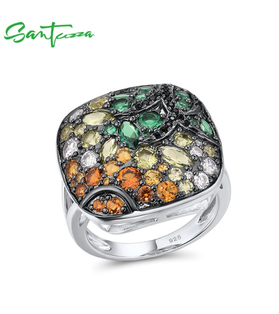 SANTUZZA Silver Ring 925 Sterling Silver Sparkling Colorful Stones Classical Square Jewelry