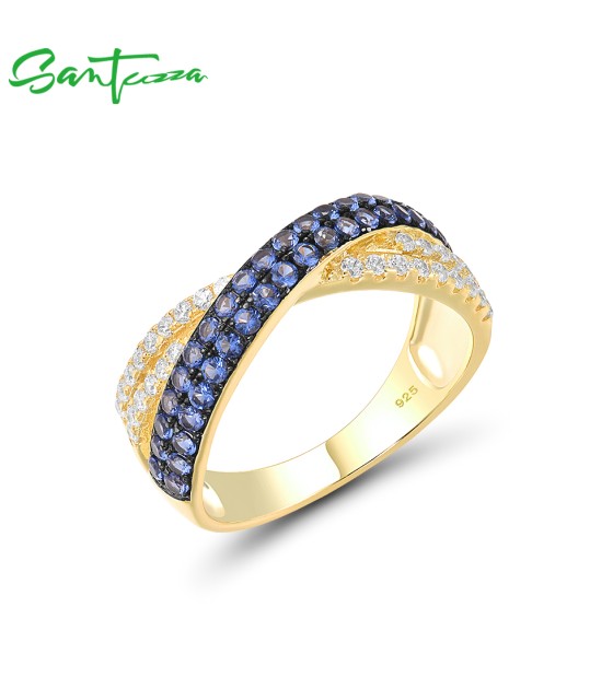 SANTUZZA 925 Sterling Silver Sparkling Black Spinel Blue White CZ Cross Ring Jewelry