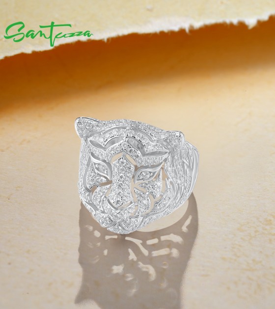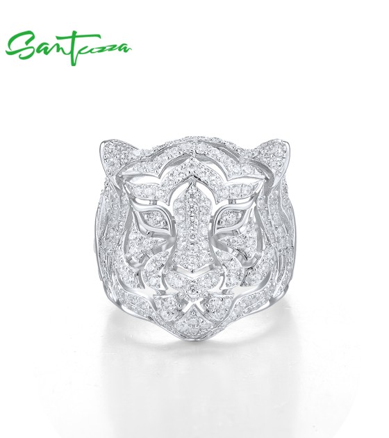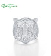 SANTUZZA 925 Sterling Silver Neutral Ring White Cubic Zirconia Cute Tiger Animal Jewelry