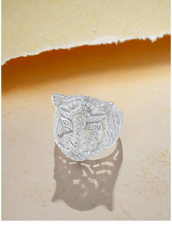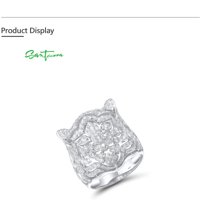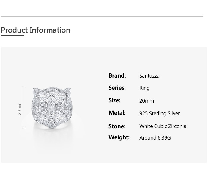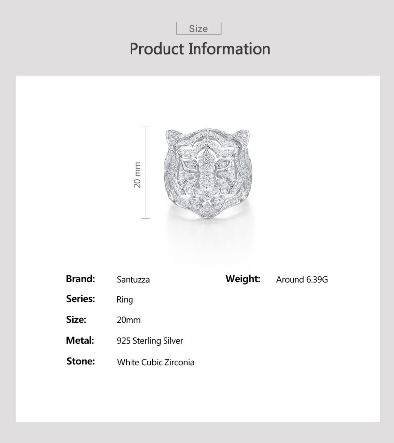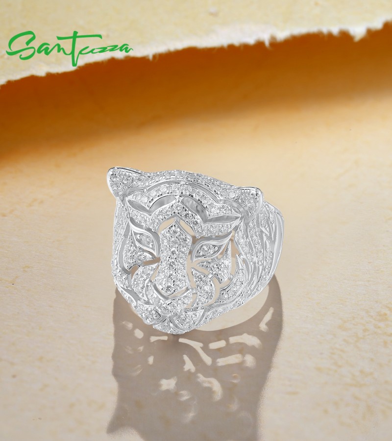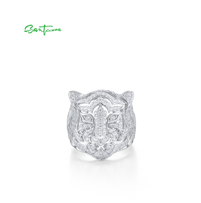 SANTUZZA 925 Sterling Silver Neutral Ring White Cubic Zirconia Cute Tiger Animal Jewelry - US 7